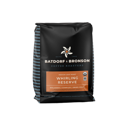 Batdorf & Bronson - Whirling Reserve SKU PC9374 Please log in to see price or purchase this item Quantity discounts available QuantityPrice (0)No Reviews yet Size 12 oz 2 lb 5 lb Grind Selector (Leave Blank for Whole Bean) Details Molasses, Complex, Dried Fruit. Details Back DetailsMolasses, Complex, Dried Fruit. Ratings & ReviewsNo reviews availableBe the first to Write a Review